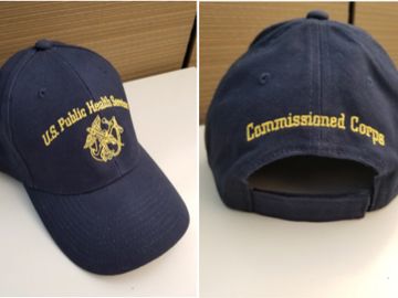 It is a non-official, leisure-wear PHS ball cap, for Officers and Officers’ Friends and Family. One size fits all. The ball cap is navy blue with gold lettering.