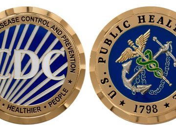 The newest version of the CDC Challenge Coin features the CDC Logo on the front and the PHS Seal on the back. The coin is 1.75" in diameter, larger than the standard PHS coin.