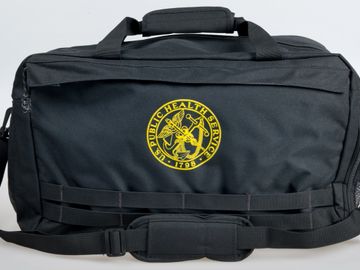 Both durable and functional! The bag features a prominent PHS Seal on the side that meets Uniform Instructions for use with the PHS uniform. In addition to the large interior pocket, it has a large zippered front pocket with rain flap. It also has exterior webbing to add additional accessories. There is a detachable adjustable shoulder strap with shoulder pad. Bag dimensions are 10" high x 19" long x 7" wide.